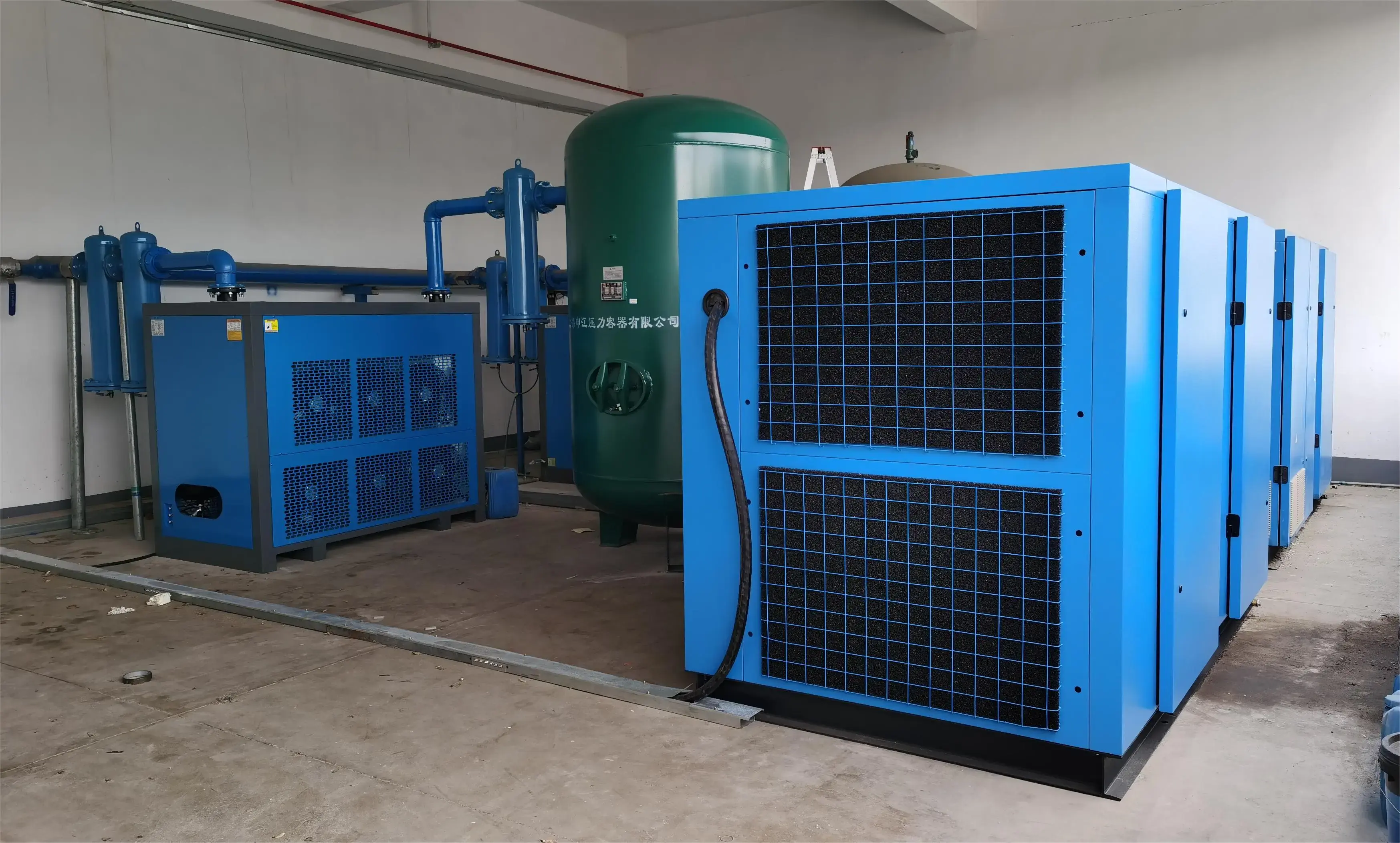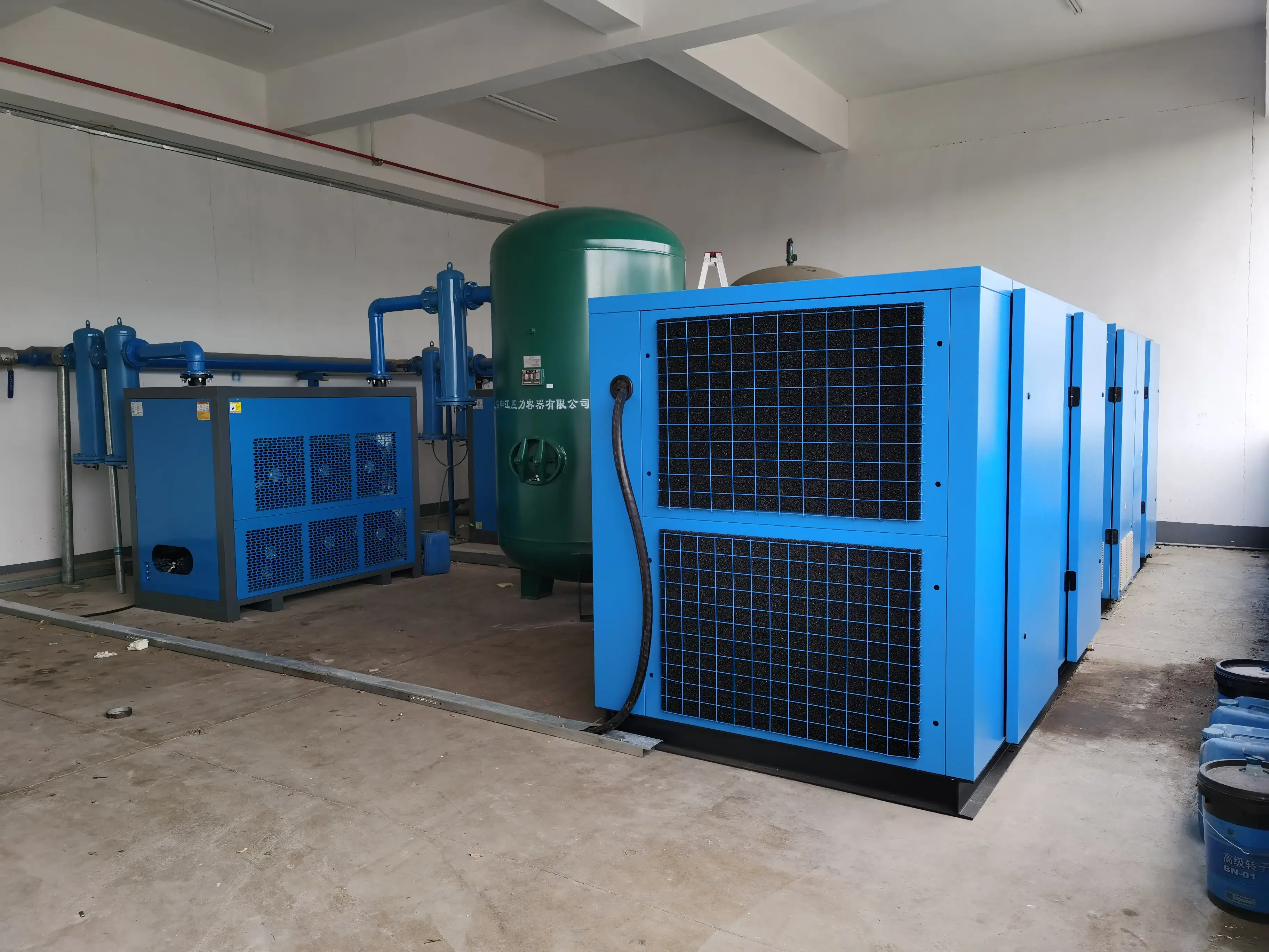 產(chǎn)品出廠時(shí),機(jī)器中已充滿壓縮機(jī)油,若安裝就位后,接通電源,即可投入運(yùn)行,通過帶背光的液晶屏幕,清晰的現(xiàn)實(shí)機(jī)器的運(yùn)行狀態(tài)。